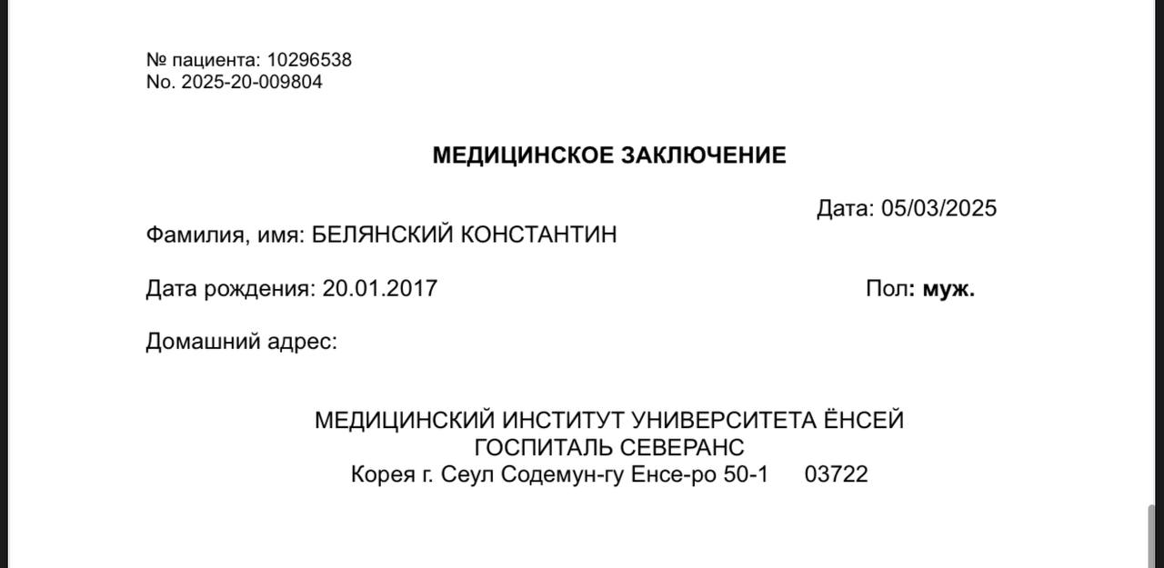 Требуется лечение в клинике "Северанс" в Южной Корее