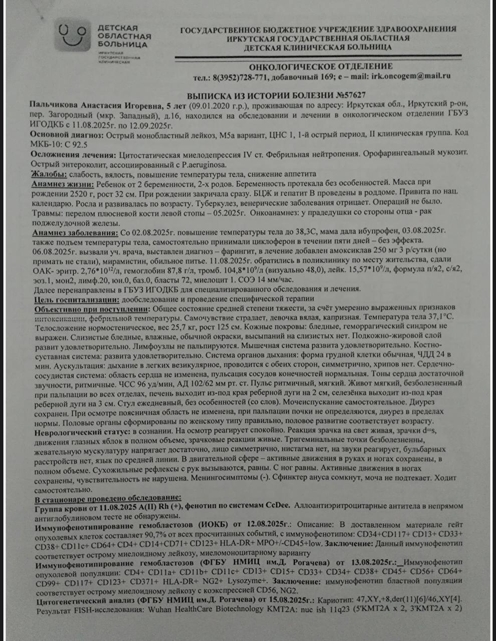 🩸 Острый миелобластный лейкоз. Сомнений нет.