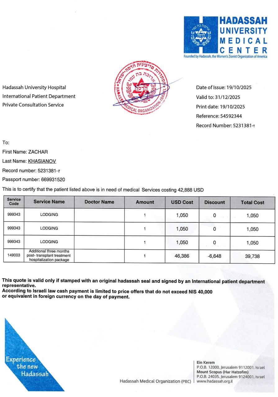 И единственное, что может дать Захару шанс продолжать бороться — это лечение, поддержка и наблюдение здесь, в Израиле.