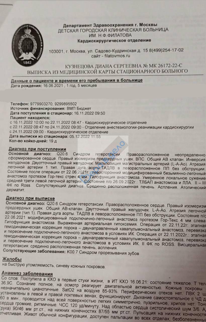 Диана родилась с тяжелейшим врождённым пороком сердца, который страшно произнести вслух…