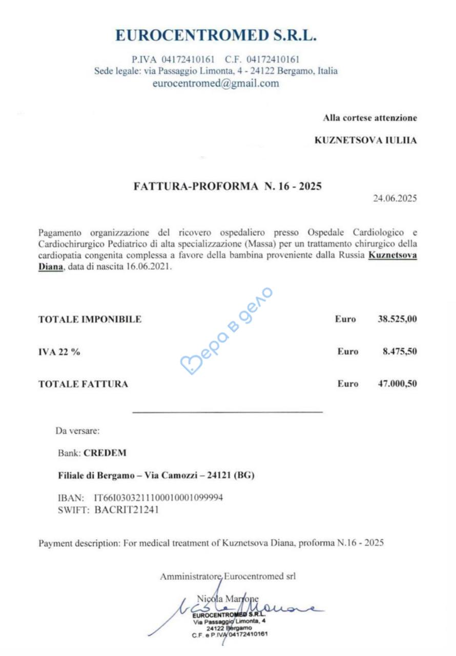 Но её готовы сделать только в специализированной клинике в Италии.