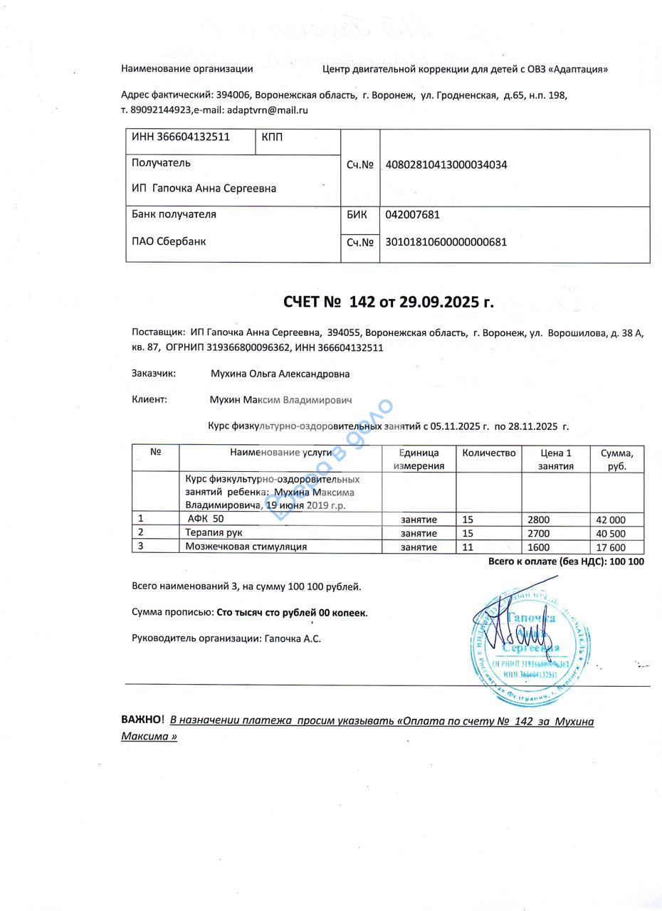 В семье работает только отец, а расходы на постоянную реабилитацию огромны. Самостоятельно оплатить курс лечения в Оздоровительном центре «Адаптация» (г. Воронеж) мы не можем. Стоимость необходимого курса — 100 100 рублей (занятия АФК, тренажеры и терапия рук).