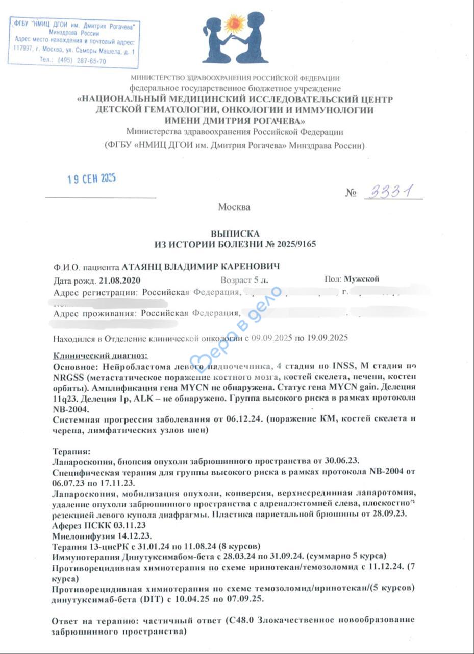 Когда Вове было 2 года и 8 месяцев, после обследований стало ясно — у него нейробластома четвёртой стадии… с поражением костей и костного мозга… 😔