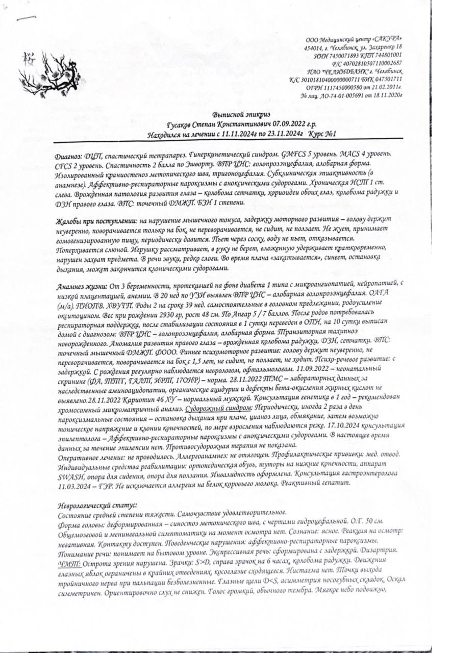 Мой сын, Степан, борется за свою жизнь с самого рождения 😔. Он мучается от боли каждый день, и времени у нас нет ⏳ — он теряет шанс на нормальную жизнь. Малыш не сидит, не ползает, не ходит, не говорит, не может даже держать голову 😞. С каждым днем его состояние только ухудшается.С рождения у Степана диагностировали ВПР ЦНС головного мозга, а в 1 год добавился диагноз ДЦП 🧠. В 8 месяцев нам дали инвалидность, и с тех пор мы начали бесконечные реабилитации, надеясь на улучшение 💔. Мы проходили бесплатные и платные реабилитации, но этого недостаточно, и ситуация становится всё хуже 😔.В ноябре 2024 года мы обратились в МЦ Сакура, где нам выставили счёт на следующую реабилитацию, но сумма неподъёмная для нас 💸! Муж работает один, старшая дочь учится на платной основе, она работает в выходные, но её зарплаты не хватает, чтобы нам помочь 😔. Мы не можем больше ждать, Степану нужно лечение прямо сейчас, а мы на пределе 😩.Пожалуйста, помогите нам! Мой малыш мучается, и я не могу больше смотреть на его страдания 😢! Время уходит, и мы на грани, не зная, что делать дальше 🆘.