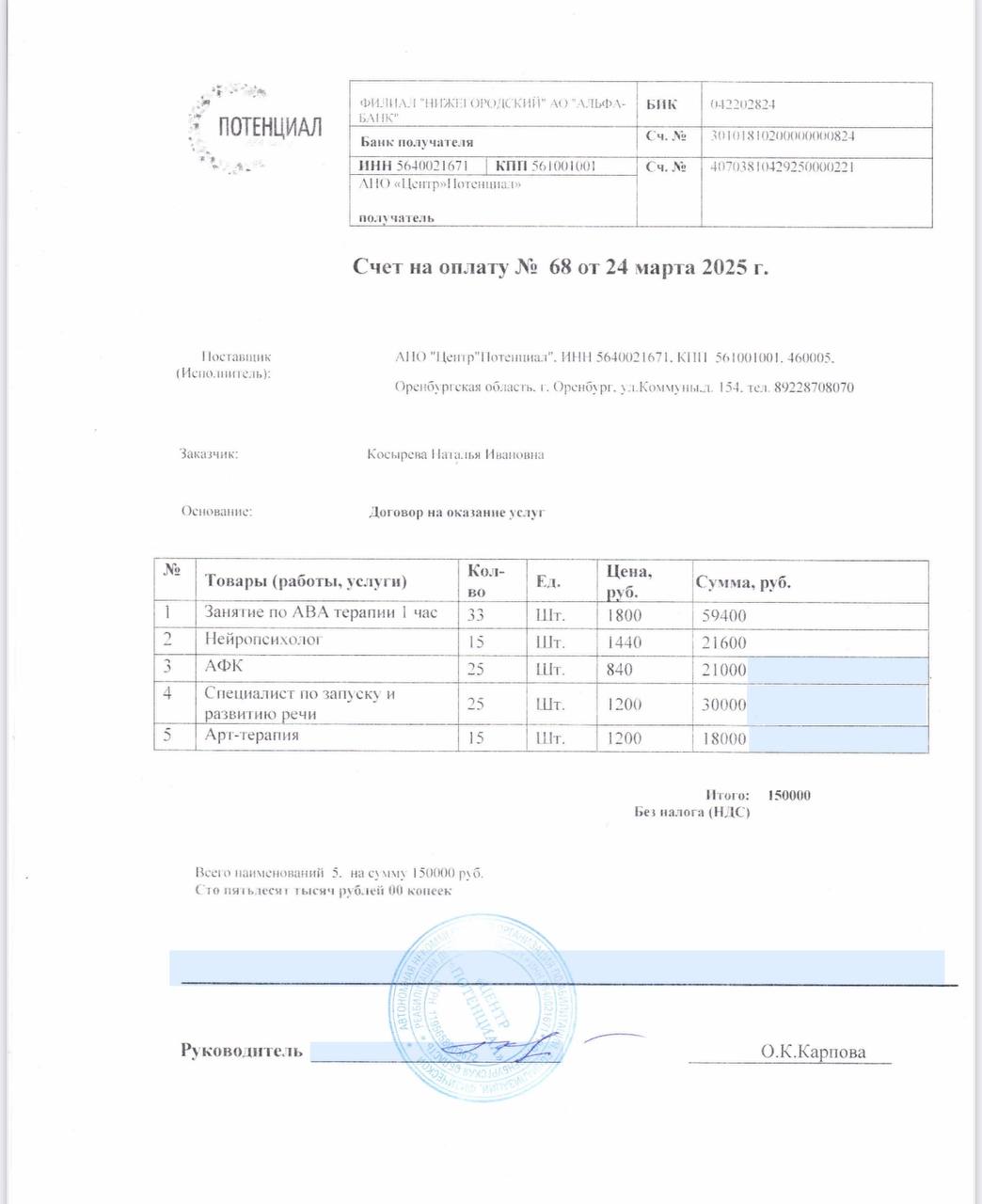 Здравствуйте! Никогда не могла подумать, что наша семья столкнется с такой бедой под названием аутизм. Хотелось бы обратиться к Вам за помощью для нашего сына Марка. Марку недавно исполнилось 6лет, диагноз- G.93.08, F.84.02, РАС, нейробриматоз1, другие расстройства вегетативной нервной системы, онр1, задержка психоречевого развития с аутистическим спектром.Марк родился абсолютно здоровым ребенком, беременность проходила благоприятно. Я готовилась к беременности сознательно, Марк был желанным и долгожданным ребенком. С самого рождения мы наблюдались у невролога, ведь у Марка была желтушка и водичка в голове, как и у большинства деток. Но я чувствовала, что с сыном что-то не так в ментальном развитии. Моторное развитие было в норме, также как и ментальное, но в 1.3 года мы стали замечать изменения: сын перестал отзываться на имя, понимать обращенную речь и реагировать на других деток. Обратившись в самом начале к местным врачам, я слышала только ОДНО: "Мама, все в порядке, вам нужно самой обратиться к врачу". Но я не сдавалась, мы начали проходить коррекцию и лечение. Мы проходили реабилитацию в местных реабилитационных центрах. У Марка наблюдается небольшая положительная динамика, стал лучше понимать обращенную речь. Потихоньку маленькими шашками мы идем к поставленной цели. Правильный диагноз и лечение нам поставили в «Научном центре психического здоровья» г.Москве. После очередной поездки наш лечащий врач порекомендовал пройти реабилитацию в МЦ «Родник» г.Москва, либо «Альмадея», г.Санкт-Петербург. Периодически мы проходим там курсы реабилитации. Недавно Марку поставили Нейрофибраматоз 1ст., теперь мы стоим на очереди на МРТ 3тесла. Лечение и реабилитации нам идут на пользу, но помимо всего этого, у нас постоянные занятия (АВА-терапия, АФК, дефектолог, сенсорная интеграция, бассейн, летом-иппотерапия, психолог), я занимаюсь с сыном самостоятельно, мы посещаем коррекционный сад, терапии лечения, которые идут на пользу. В нашем городе многих методов лечения нет, поэтому приходится проходить их в федеральных центрах за свой счет. В местные реабилитации приходится ждать по 9-10 месяцев. Все деньги по уходу за ребенком по инвалидности и вся инвалидность, а также алименты уходят на занятия, стоимость которых растет. На работу официально я не могу выйти, поэтому периодически беру переводы для подработки. Прогресс нашего лечения заметен. Очень бы хотелось обратиться к Вам за помощью в реабилитации в центре "АВА-Потенциал", г.Оренбург. У моего сына есть небольшая динамика, стало лучше понимание, появился небольшой интерес. Однако более сложные задания ему все еще не даются. С помощью АФК (адаптивная физическая культура) и сенсорной интеграции специалисты научили чувствовать свое тело. Он даже начал прыгать на одной ноге. Наши усилия привели к тому, что мой сын намного лучше стал понимать речь и даже начал понемногу выполнять бытовые действия. Мы получаемправильное медикаментозное лечение, от которого поведение моего сына улучшается, дополнительно мы проделали процедуру по методу Анат Баниэль, брифабилити. Марк находится под постоянным контролем врачей, мы ежедневно занимается со специалистами. Мы уже проходили там педагогическую коррекцию, после которой у нас заметен результат. Нам нельзя останавливаться на достигнутом и делать большие перер