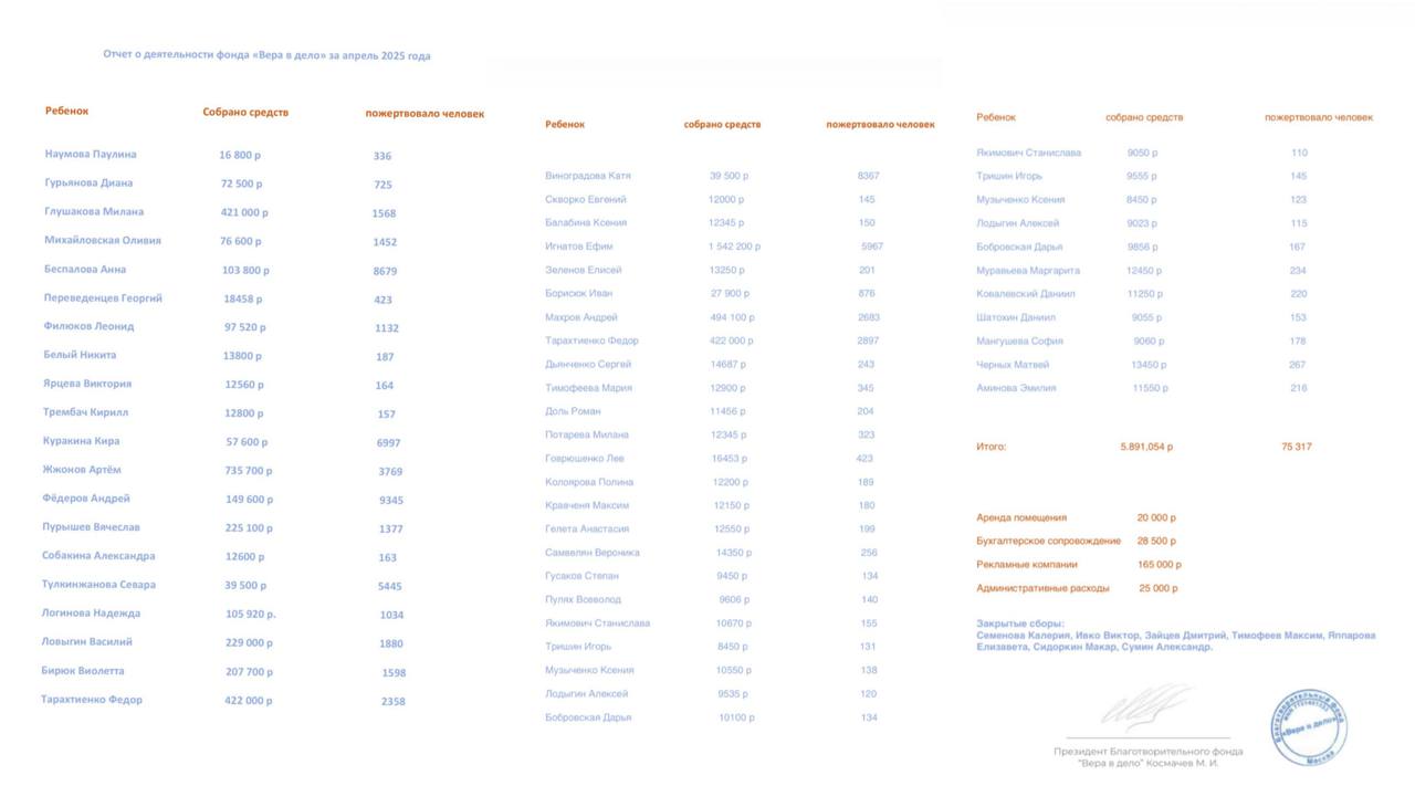 Отчёт о деятельности фонда в апреле 2025 года