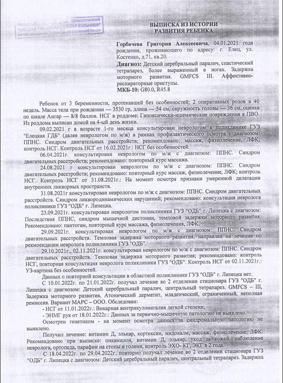 🙏 Мы очень просим вас помочь Грише пройти этот жизненно важный курс реабилитации! Каждый ваш вклад — это шаг к светлому будущему для нашего мальчика!