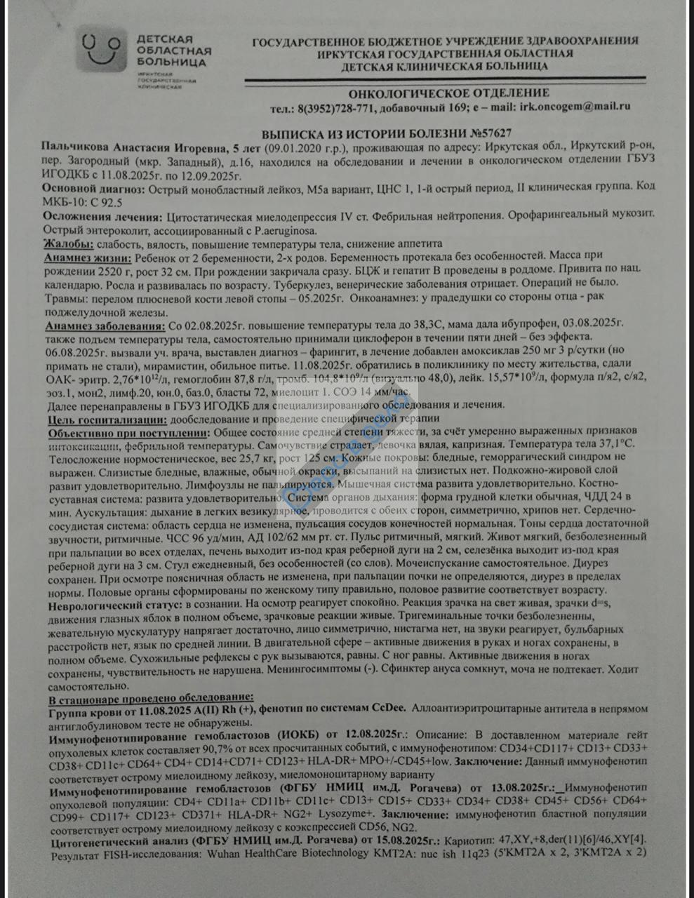🩸 Острый миелобластный лейкоз. Сомнений нет.