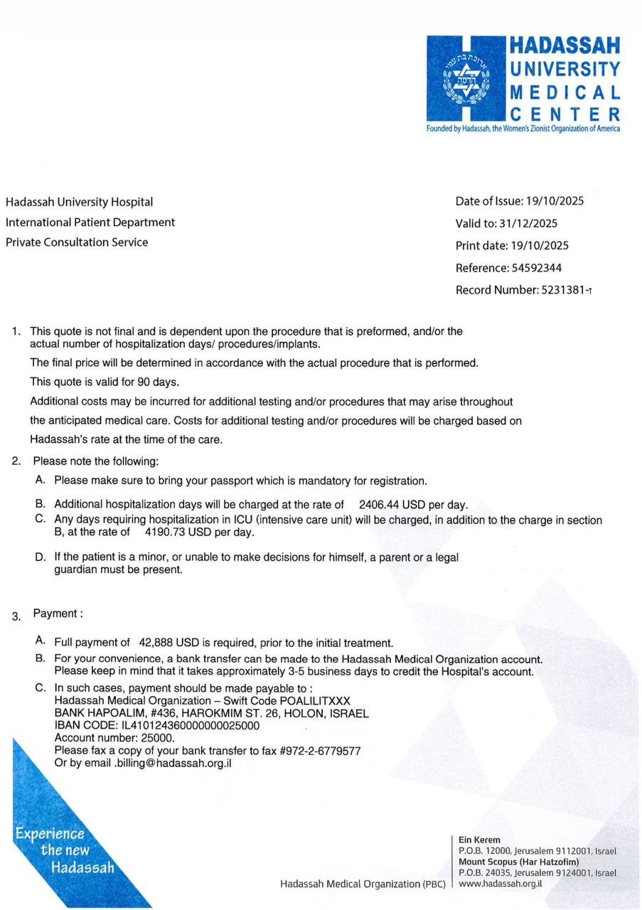 И единственное, что может дать Захару шанс продолжать бороться — это лечение, поддержка и наблюдение здесь, в Израиле.
