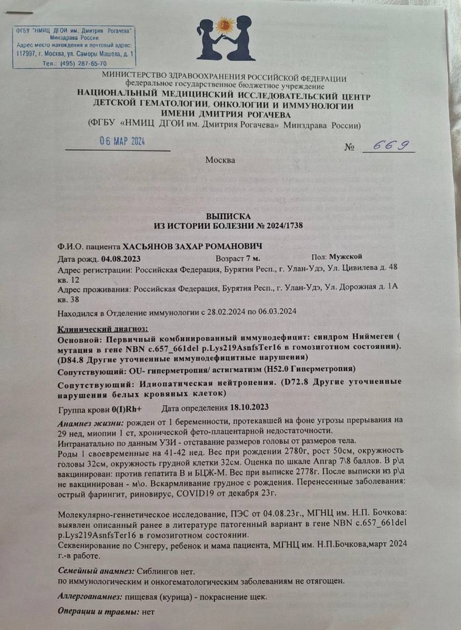 Педиатр даже не пыталась лечить дома — сразу выписала направление на госпитализацию, потому что подозревали первичный иммунодефицит.