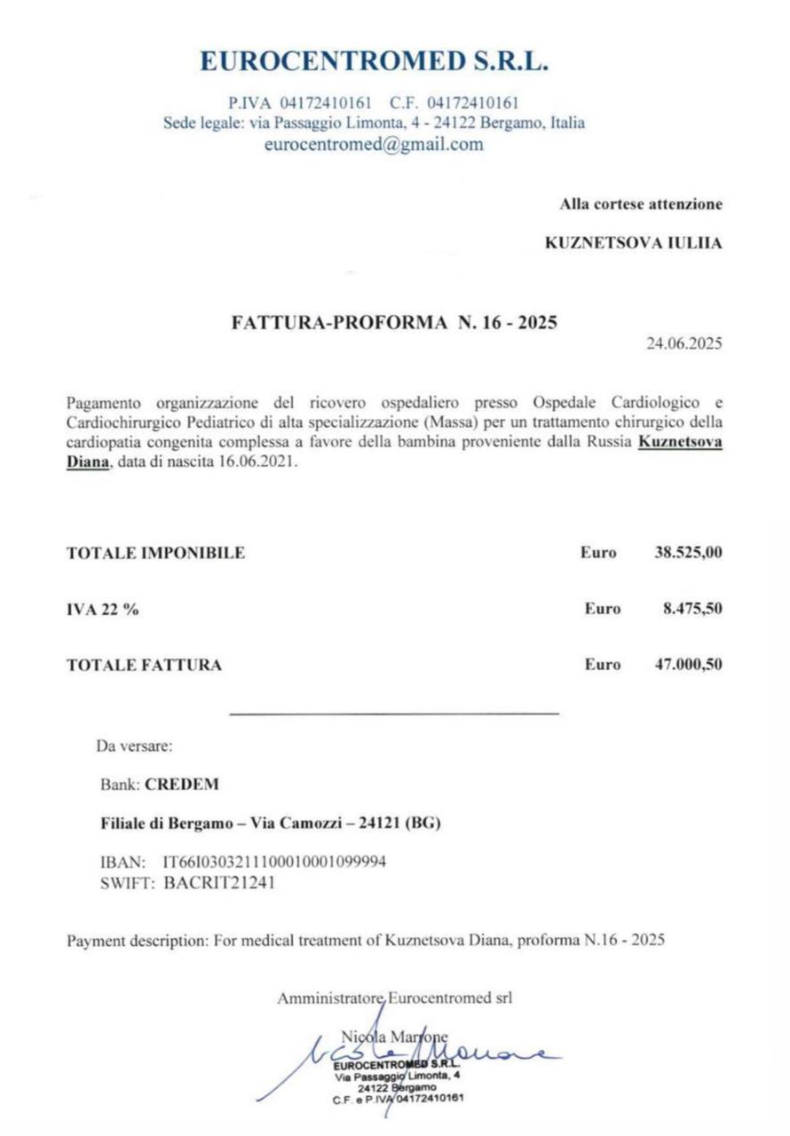 Но её готовы сделать только в специализированной клинике в Италии.