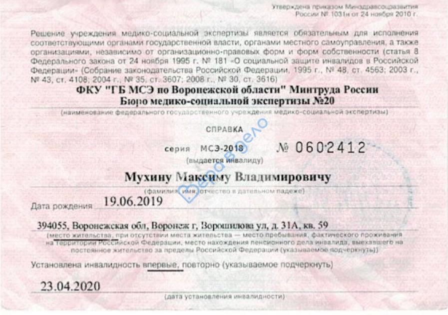 — сын — Мухин Максим Владимирович, 2019 г.р., ребенок с инвалидностью.