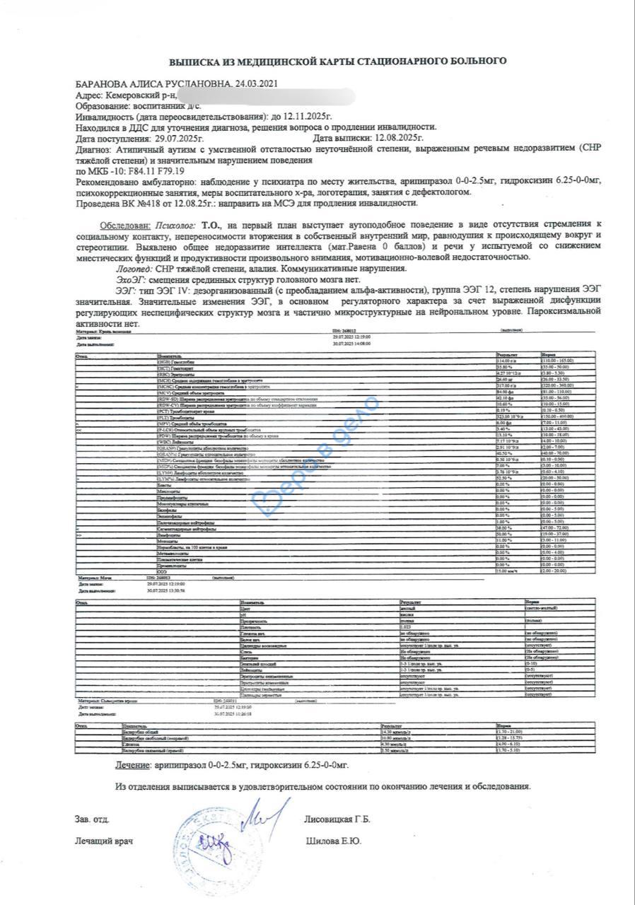 У неё атипичный аутизм с умственной отсталостью неуточнённой степени и выраженным речевым недоразвитием… 💔
