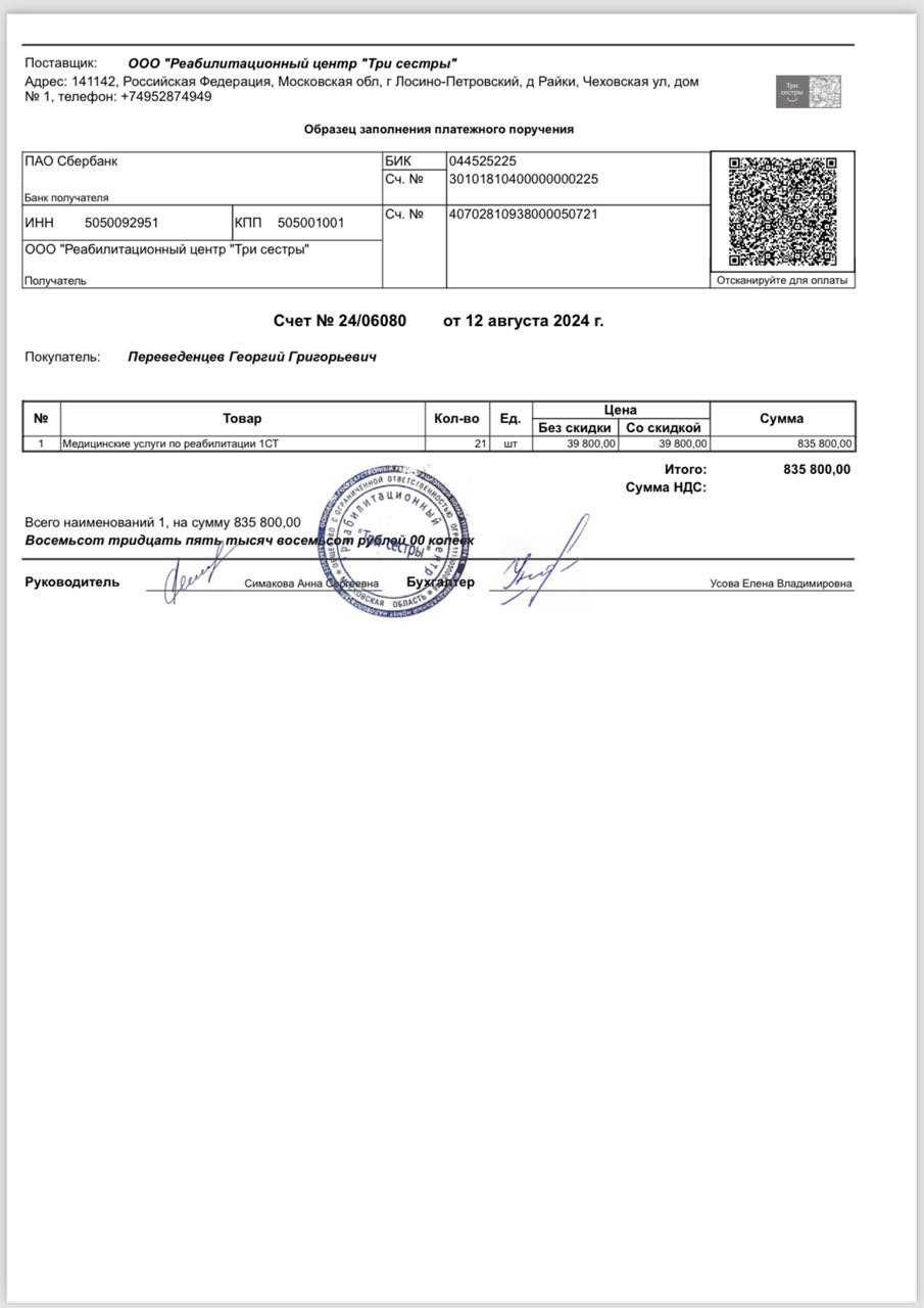 Срочный курс лечения в реабилитационном центре << Три сестры >>