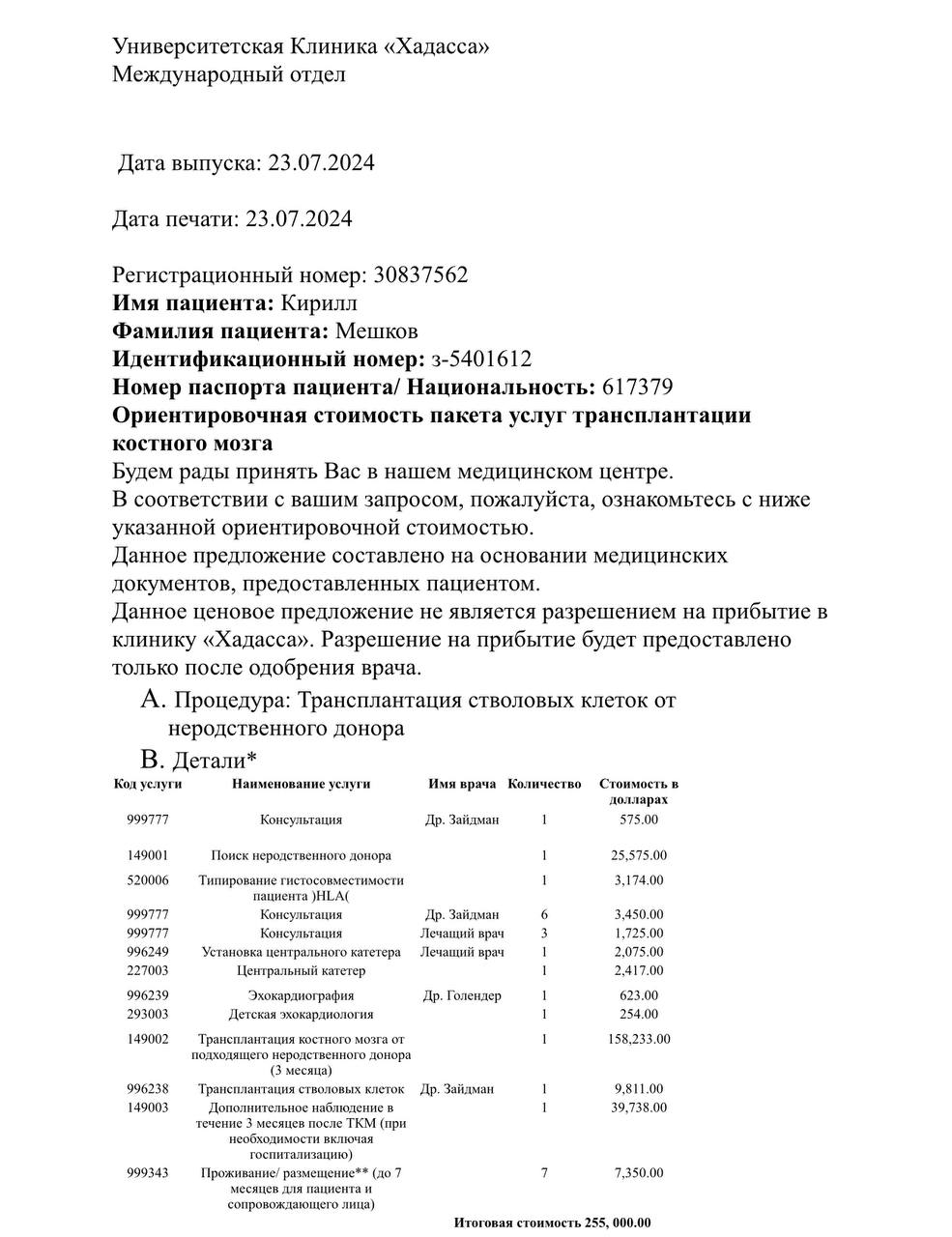 Срочное лечение в клинике ''Хадас'' ( Израиль )