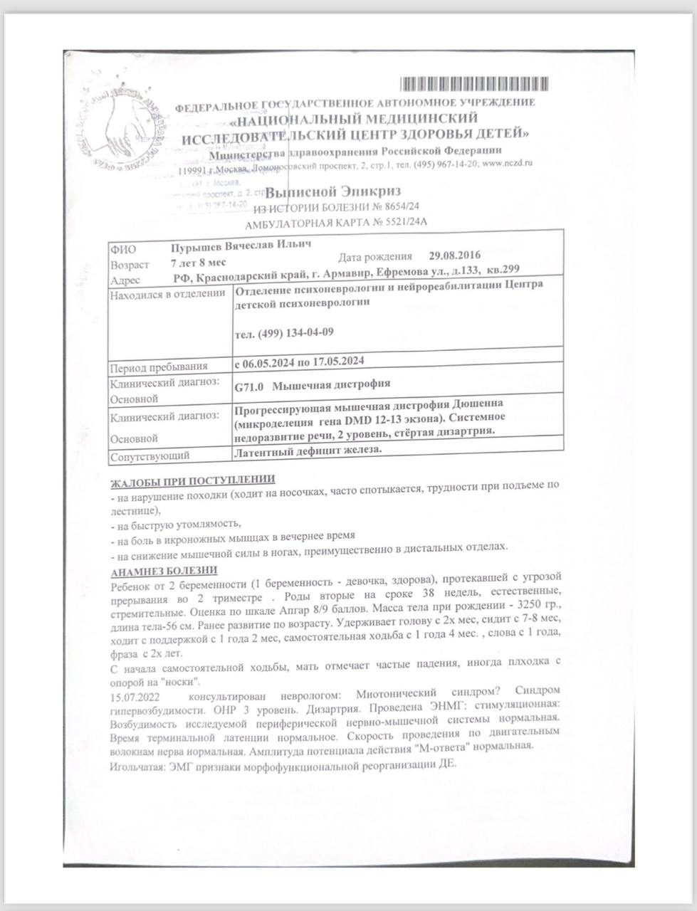 Сейчас Слава не может бегать, прыгать, ему тяжело подниматься по лестнице. Он устает за 15 минут, его тело становится все слабее. 😓 Его сердце и легкие под угрозой, и если мы не получим лечение, он может просто не дожить до следующего года. 😭 Страшно представить, что будет с ним, если мы не действуем прямо сейчас. ❗