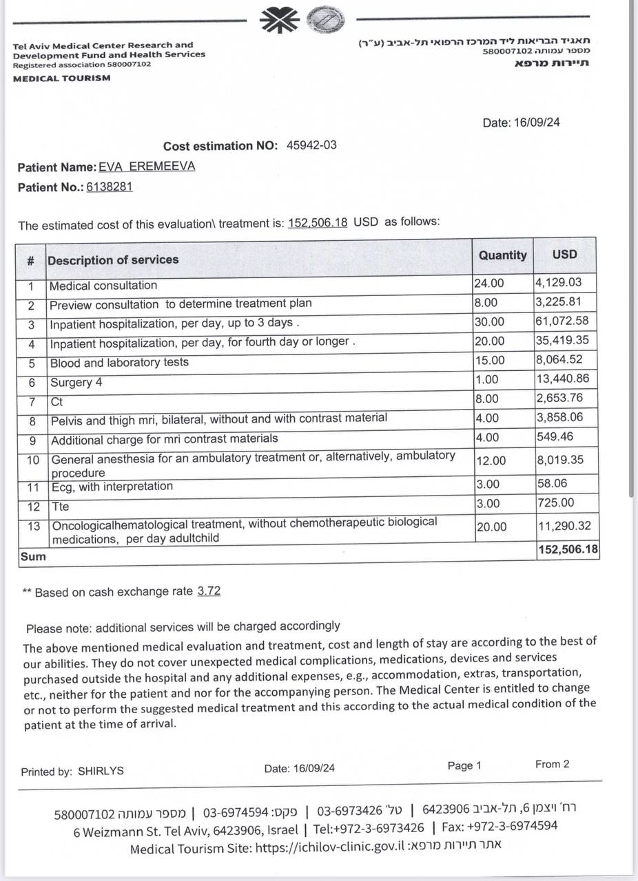 + 8.000$ операция по сохранению яичника + радио терапия (на неё ещё нет счета)