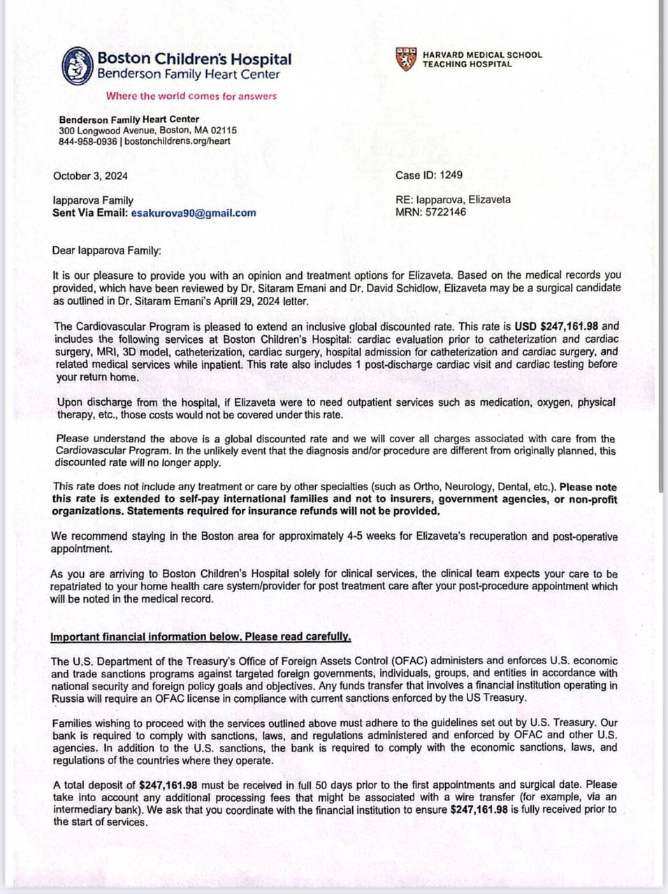 💔 Единственный шанс на спасение — операция в Boston Children’s Hospital.