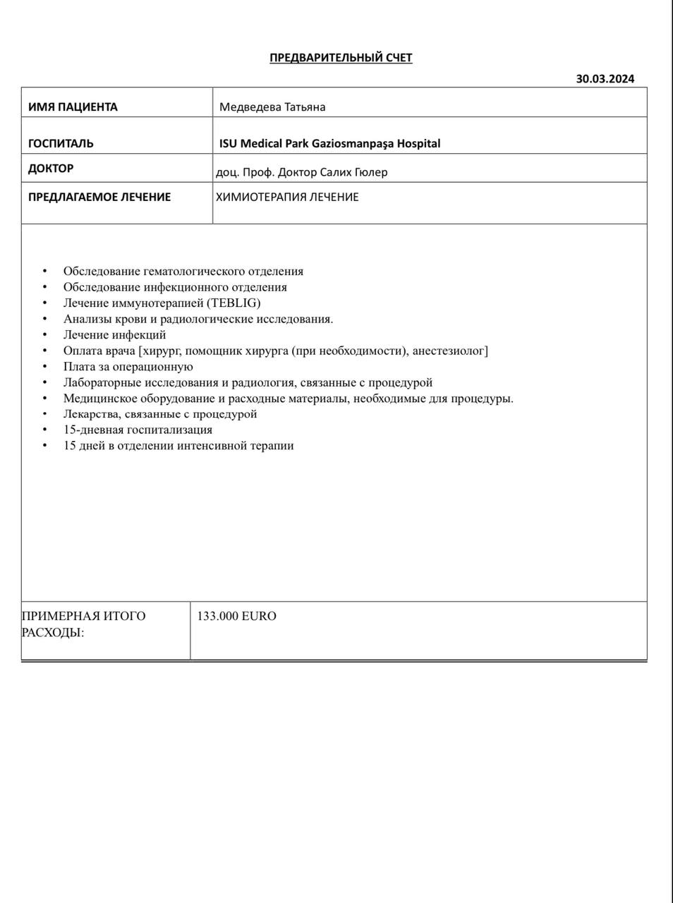 Клиника выставила счет в сумме 13.965.000₽ рублей. Для нас это не посильная сумма.