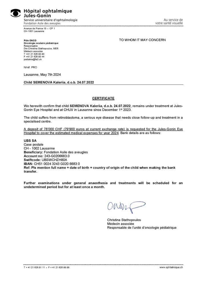 Добрый день. Я мама Калерии, моей единственной девочки, и я не знаю, как пережить то, что с ней происходит… 😔 Всё началось с того, что я заметила, как её глазик начал косить, а потом появился странный отсвет. Я думала, что это просто временно, но увы, нам поставили диагноз, который я не могла принять — ретинобластома 2 стадии, группа D. Всё внутри меня остановилось, как будто я больше не жила… 💔😢 Я потеряла силы, не могла понять, как такое может быть с моим ребёнком…