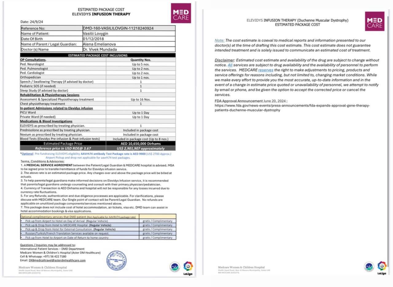 Единственный шанс для нас — лечение в Дубае 🇦🇪, в Medcare Women & Children’s Hospital. Клиника готова принять нас, но стоимость — 1 145 000 рублей. 😭 Для нас эта сумма неподъёмна, а время уходит. Если Вася сядет в инвалидное кресло, лекарство уже не поможет! 🕯️💔